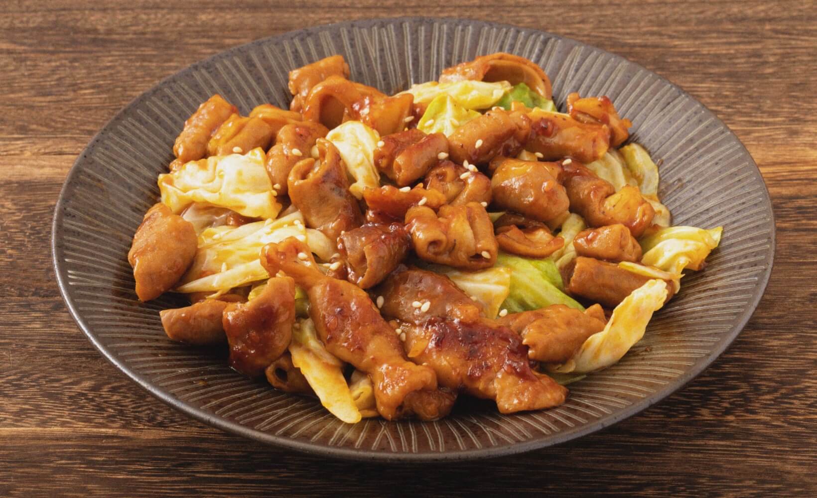 豚ホルモンの旨味たっぷりの脂と醤油ダレが野菜に絡み、味がしっかりとしみ込みながらもほどよい弾力を残した、ごはんのあてにもお酒のつまみにもピッタリな仕上がりに!