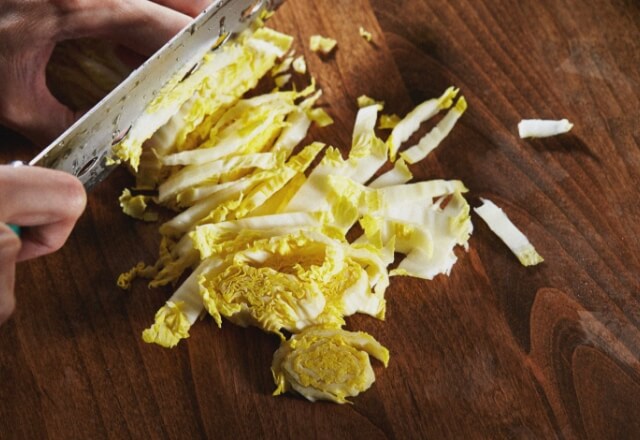 キャベツ・もやし・ニラなどのお好みの野菜を切る。