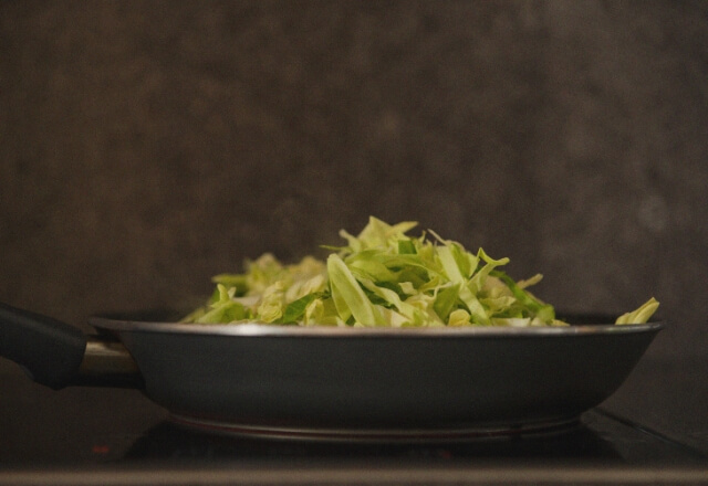フライパンを中火にかけ油を敷き、切った野菜を炒める。